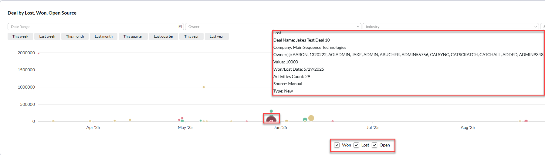 This information can also be filtered by Win/Loss using the checkboxes at the bottom of the chart.